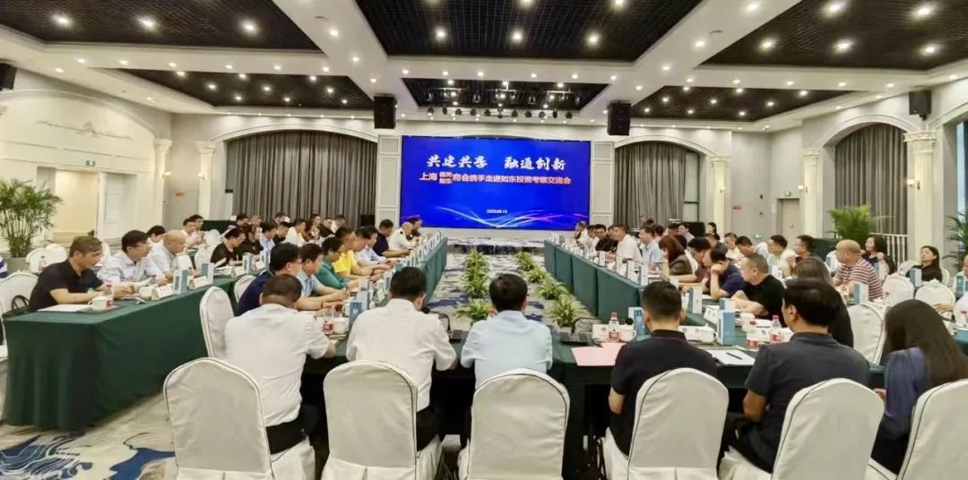 2023 年 9 月 15 日下午,上海临海商会&上海如东商会携手走进如东投资考察交流会在江苏省如东县林克斯君澜温泉度假酒店举行。此次会议与上海如东商会建立了良好的互访、共享、合作机制,达成了友好合作关系,为各商会成员之间的经贸合作、文化交流牵线搭桥,从而优化资配置,实现优势互补。