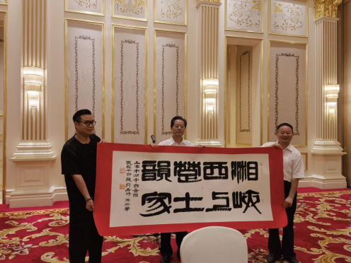 会后,谢东海会长与黄瀚兴副会长共同赠予湘西自治州墨宝一幅,虢正贵书记代表湘西自治州向商会表示祝福并邀请商会组织湘商去湘西做投资考察,兴业湘西、共赢湘西。