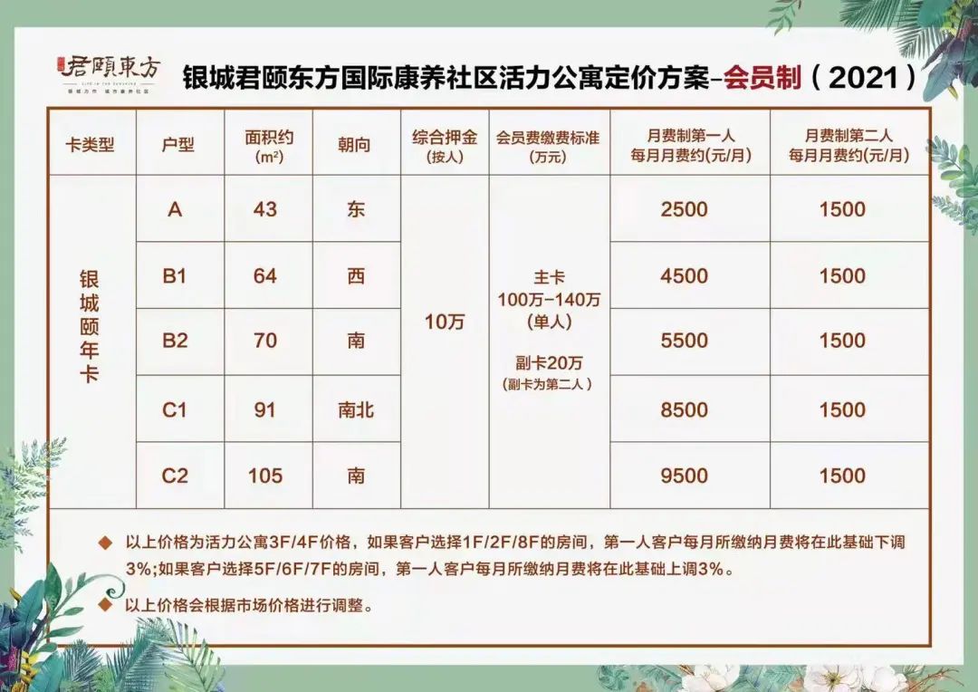 护理之家床位费从3000-10000元不等,押金需缴纳10万元,餐费每月1800元,一次性安置费1500元,护理费1800-8800元不等。