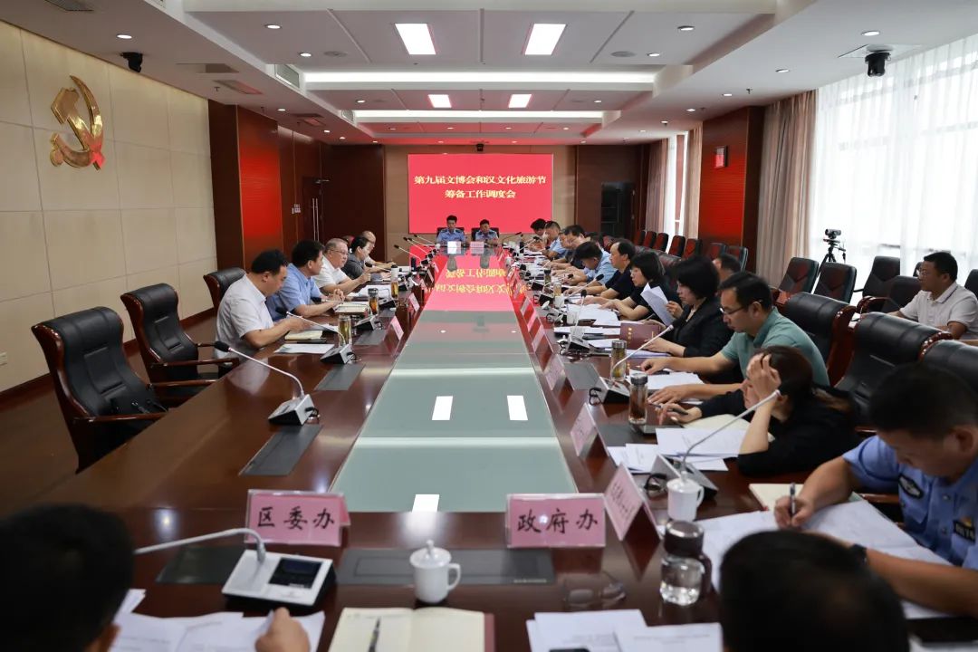 9月19日,区委书记朱明泉主持召开第九届中国·徐州文化博览会和汉文化旅游节筹备工作调度会,听取有关工作汇报,安排部署下步任务。区委副书记、区长陈婕,区委常委、宣传部部长刘华东,副区长刘成军,大龙湖旅游度假区公安分局局长魏斌参加会议。
