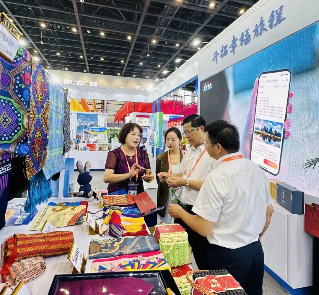 9月18日,广西旅游发展集团党委书记、董事长容贤标来到南宁国际会展中心,参观广旅集团在东博会的首个特装形象展,与工作人员亲切交流。