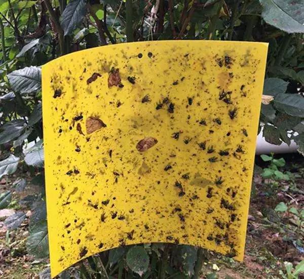 我国有很多果园已用黄粘板(图5)诱杀果蝇,包括樱桃园。各地每亩挂黄粘板的数量不一样,因为一块黄粘板仅1.1元,只值50~100克樱桃的钱,所以笔者建议每株树挂一块,挂于树的东南方,高度1.5米左右。