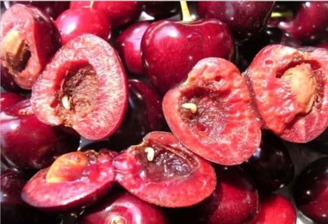 (3)我国一个樱桃产区是由大量的小规模经营的农户集合而成的,难以同时采取统一的有效防治措施,致使防治变得无力和困难。以上原因使我国樱桃果蝇的虫果率逐年增加。2018年我国陇海铁路沿线樱桃栽培区在樱桃成熟时下雨多,樱桃裂果多,有利于樱桃果蝇的繁殖,使樱桃虫果率大大增加,出现个别无防治措施的樱桃园虫果率过高而倒掉樱桃的现象。因为近年樱桃果蝇感染越来越严重,河南电视台两次采访本文作者黄贞光研究员,黄贞光研究员指出:近年来我国樱桃果蝇的危害确实越来越严重,已引起樱桃科技工作者和种植者的广泛关注,已到了不能不防治的严重时期;只要所有樱桃果农采取统一的防治措施,樱桃果蝇的危害是可以控制的;樱桃含有褪黑激素和槲皮苷等多种对人体健康有益的营养成分,多吃樱桃有益于健康。