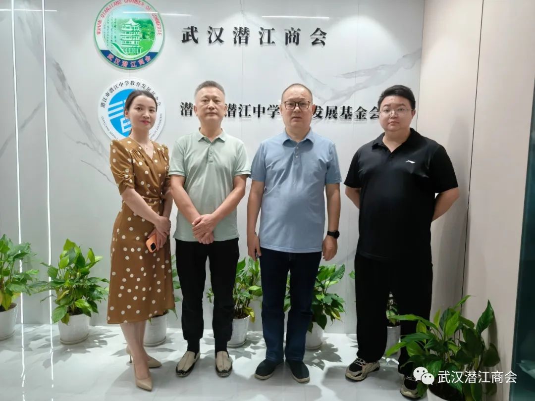 左起:武汉潜江商会驻会副秘书长敖师荣,潜江市市委统战部副部长、市工商联党组书记关晓斌,武汉潜江商会会长蒋圣琥,潜江市非公有制企业投诉服务协调科科长李昊