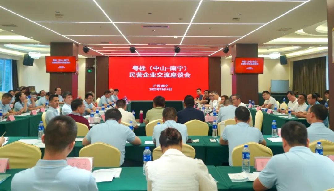为深入学习贯彻党的二十大精神,加强粤桂经贸交流合作,搭建两地民营企业沟通合作平台,促进两地企业互利共赢,9月13日下午,我会会长单位代表邱盛平,副会长林守金、陈新文、王胜岚、林晓聪带领企业代表40余人到访南宁市工商联开展“粤桂(中山-南宁)民营企业交流座谈会”活动,受到南宁市工商联主席、市科技局局长梁展,南宁市工商联党组成员、副主席蔡丽蓉等人的热情接待。双方共话粤桂经贸情谊,谋未来发展新篇。