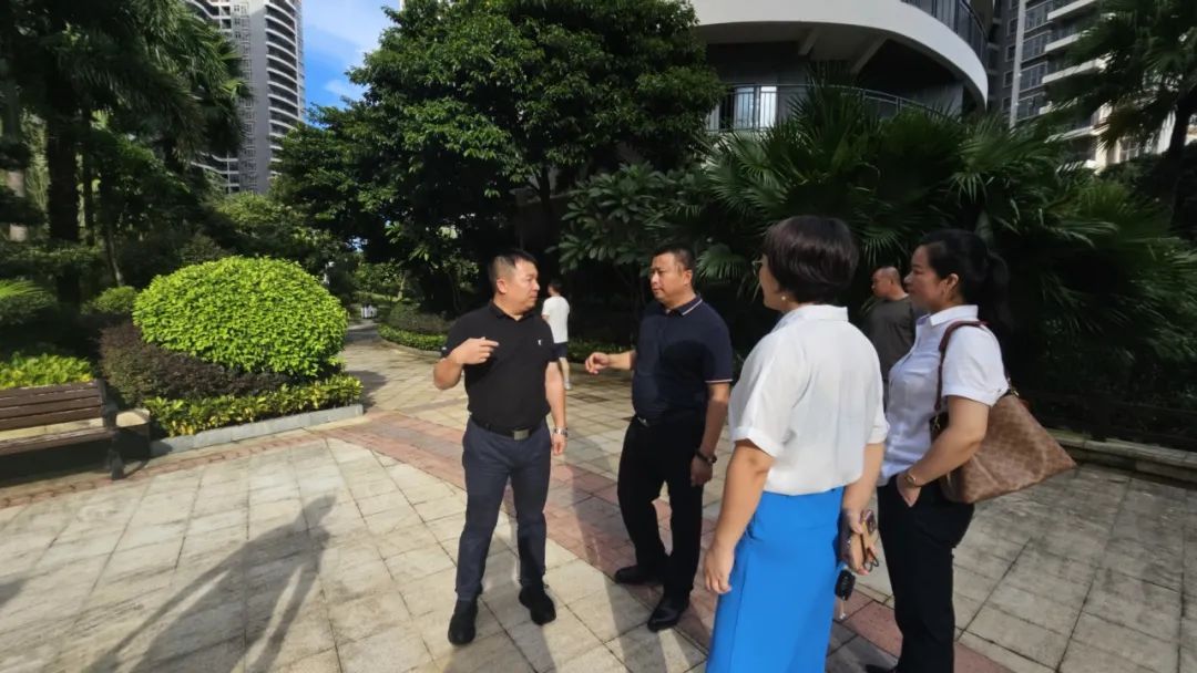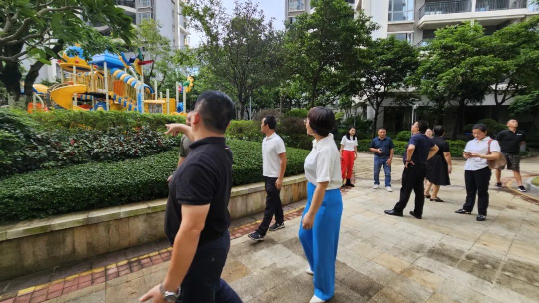 第二站,走访组来到副会长单位——广西智健物业服务有限公司。公司位于银城绿洲小区内,副会长吴世波带领走访组参观了小区环境、物业公司办公室、物业服务中心及党建办公室等。