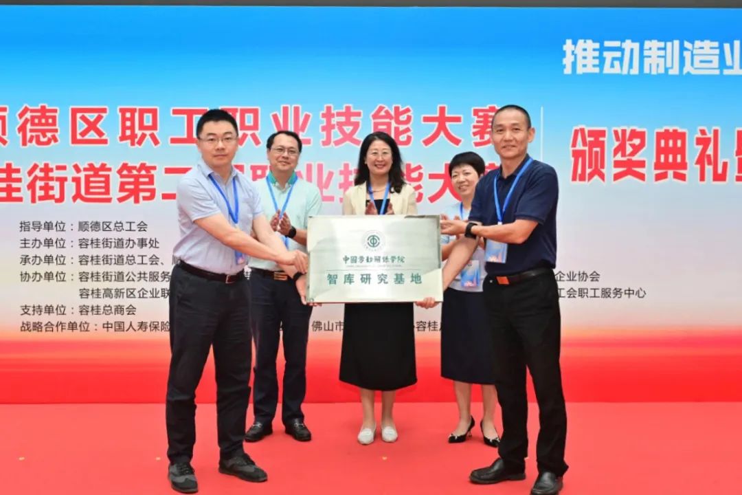 当日,调研组出席容桂街道第二届职业技能大赛竞赛闭幕式,为“中国劳动关系学院智库研究基地”揭牌,双方将以智库研究基地设立为契机,积极探索和挖掘可推广、可复制的先进基层经验,不断深化产业工人队伍建设改革的理论与实践研究。
