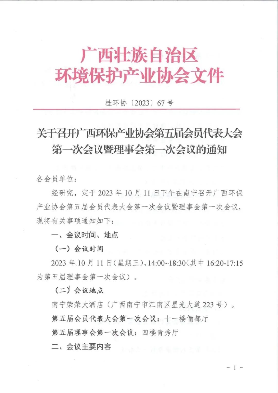 通知公告 | 关于召开广西环保产业协会第五届会员代表大会第一次会议暨理事会第一次会议的通知