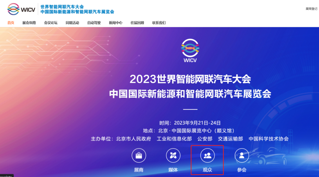 登录http://www.ieevchina.com/ 点击“观众登记”,填写信息后提交。