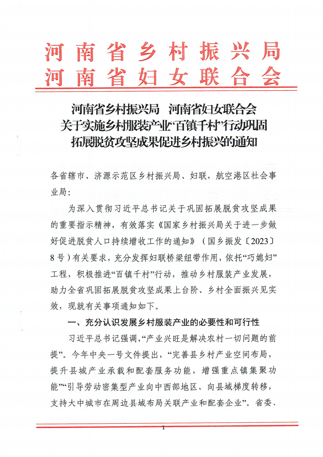 【重磅】关于实施乡村服装产业百镇千村”行动 巩固拓展脱贫攻坚成果促进乡村振兴的通知