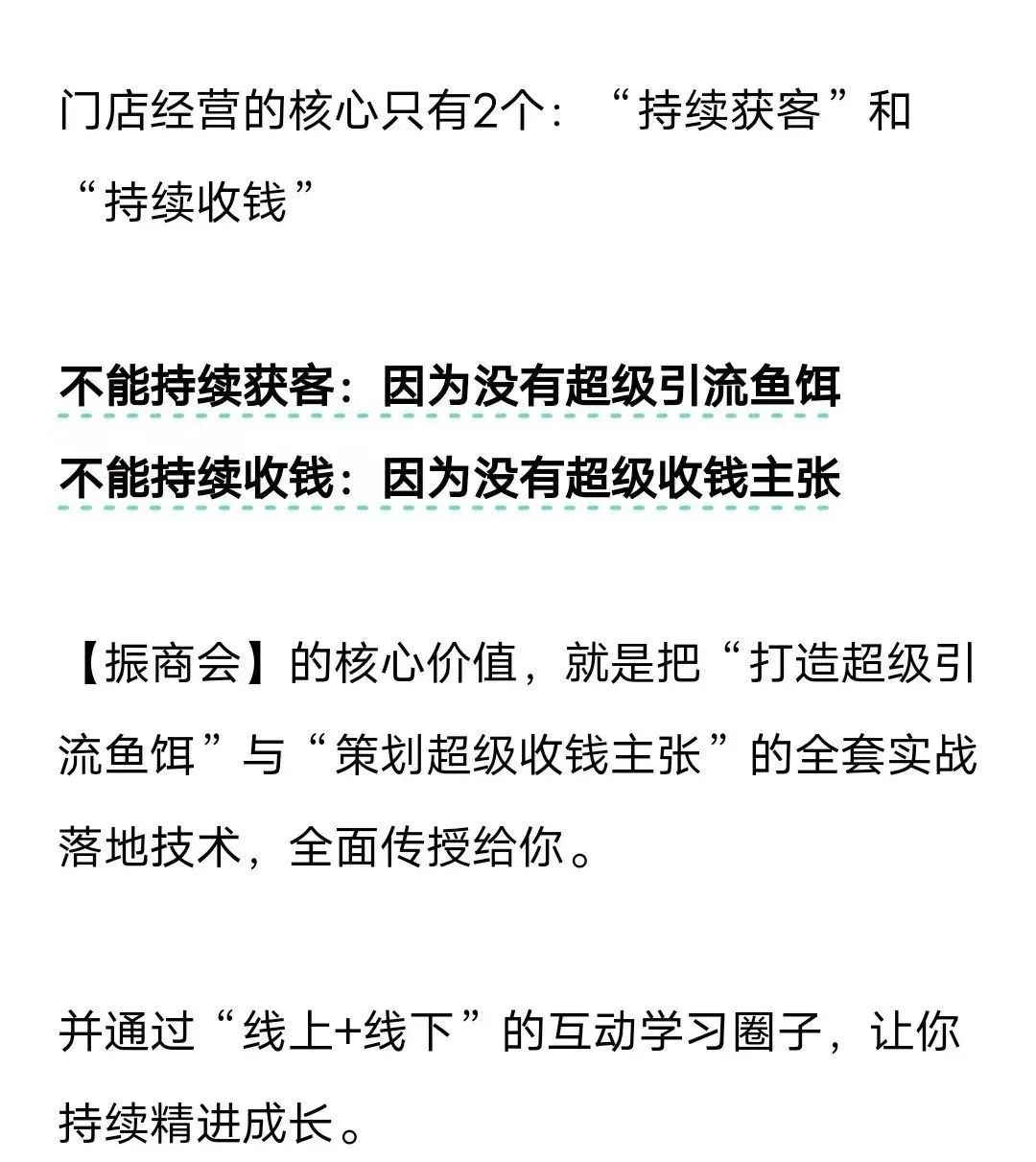 最后补充:我们为振商会会员提供的3项服务,任何一项单独的服务,都超过 9800 的价值,要知道这些服务方案,在外面花几万的学费,都不一定能学到,并运用到你的生意当中,毕竟这全是来自市场一线的实打实的玩法。