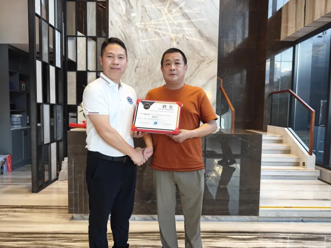 会长潘戌立为新任副会长梁石钟颁发聘书