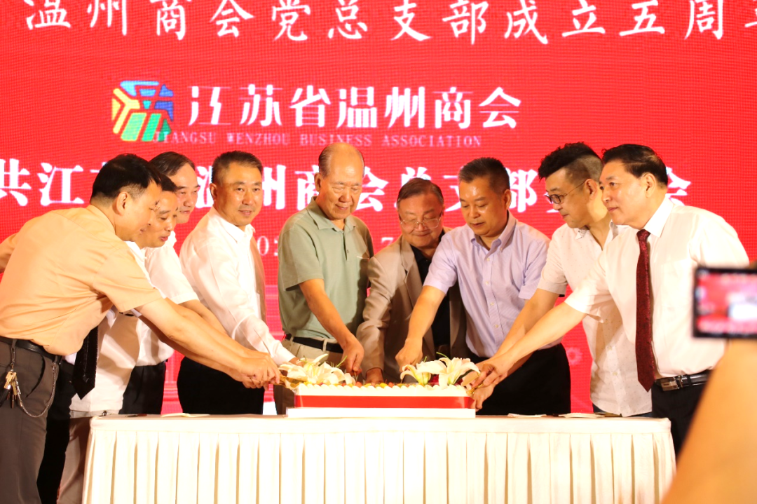 江苏省温州商会会长张国利,党总支书记、轮值会长谢丙阔,江苏省温州商会轮值会长叶华、朱善益、陈文杰、黄忠海、杨良冲、秘书长林敦席及部分常务副会长、副会长、理事代表、党员代表及江苏省省级各商会代表出席本次庆典活动。