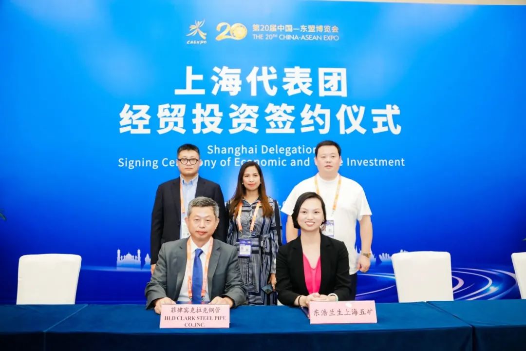 在东浩兰生集团党委书记、董事长曹炜见证下,东浩兰生集团下属企业上海五金矿产发展有限公司副总经理葛燕与菲律宾企业HLD CLARK STEEL PIPE CO., INC. 常务董事MR. SAM GONG CHEN签订战略合作备忘录,双方就共同关注的目标市场开拓与石油管道管等产品的分销事宜建立战略合作伙伴关系,拟达成战略合作意向金额800万美元。