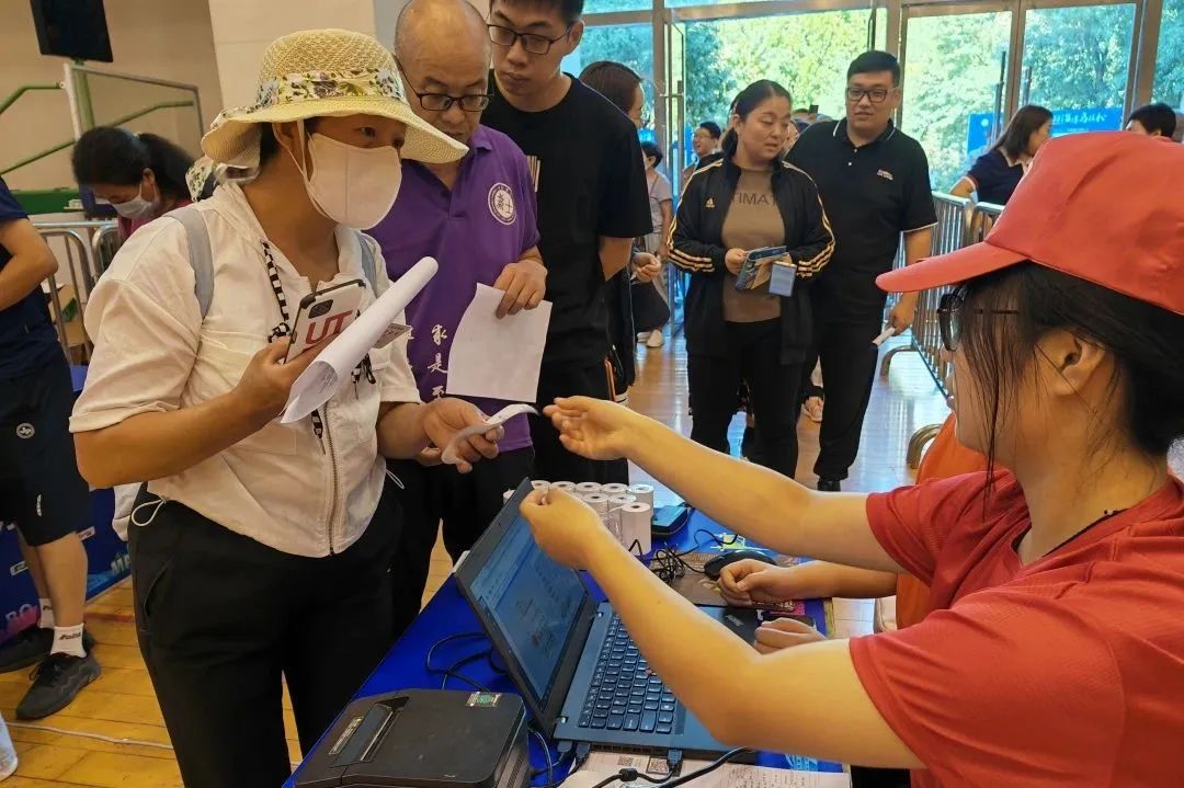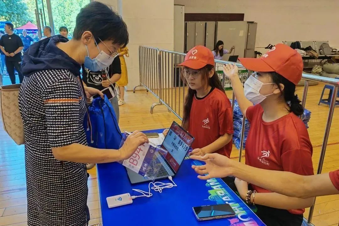 志愿者现场为参赛选手们发放