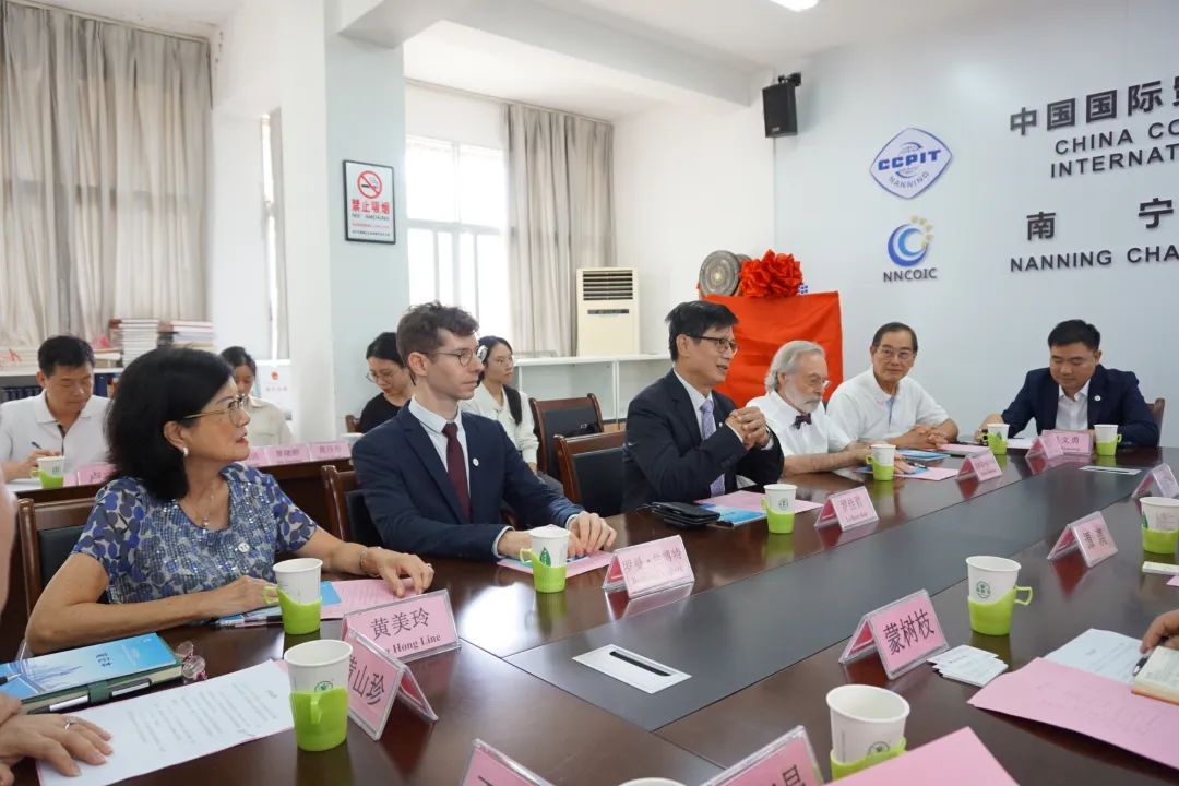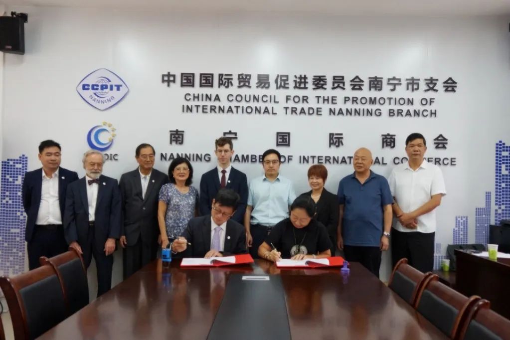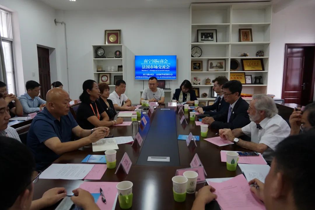 9月16日,在中法两国20余位商协会和企业代表的见证下,南宁国际商会与法国亚华商贸联合会在广西南宁签署《南宁国际商会与法国亚华商贸联合会合作备忘录》。法国亚华商贸联合会驻南宁办事处正式揭牌,该办事处设在南宁国际商会秘书处。同期举办2023“南宁国际商会法国市场交流会”,中国企业代表与法方商务团代表在会上就中国产品如何开拓法国市场等进行交流。