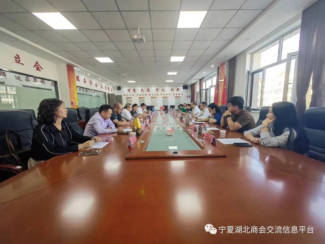 9月21日,按照全国工商联的部署,全国“五好”县级工商联、“四好”商会互学互促工作组在湖南省工商联党组成员、副主席漆平波,自治区工商联党组成员、副主席范瑜带领下,湘宁两省区工商联及所属商会会长一行10人,对宁夏湖北商会全国“四好”商会创建工作进行考察调研。会长杨启云、支部书记江定勇、监事长王明春、顾问王浩、秘书长陈继洋出席活动,常务会长陈正平、王兴中、张修林,副监事长高英凤,支部宣传委员、理事彭晓玲参加活动。