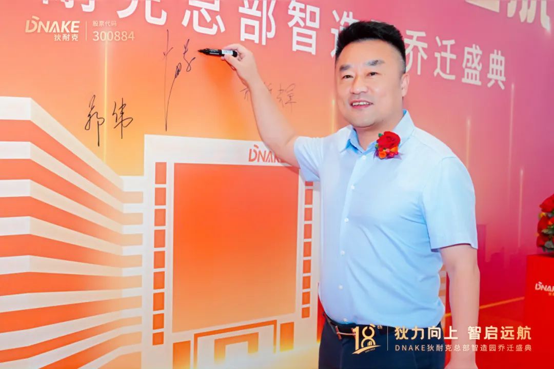 锣鼓喧天庆乔迁,龙腾虎跃迎新篇。下午15点半,主题为“狄力向上,智启远航”的DNAKE狄耐克总部智造园乔迁庆典正式开始。立企十八载,弹指一挥间。今年,正值全面贯彻落实党的二十大精神的开局之年,也是狄耐克加速发展的关键之年。此次乔迁总部智造园,不仅是办公环境的升级,更是品牌形象、研发实力、产品质量的全面提升。