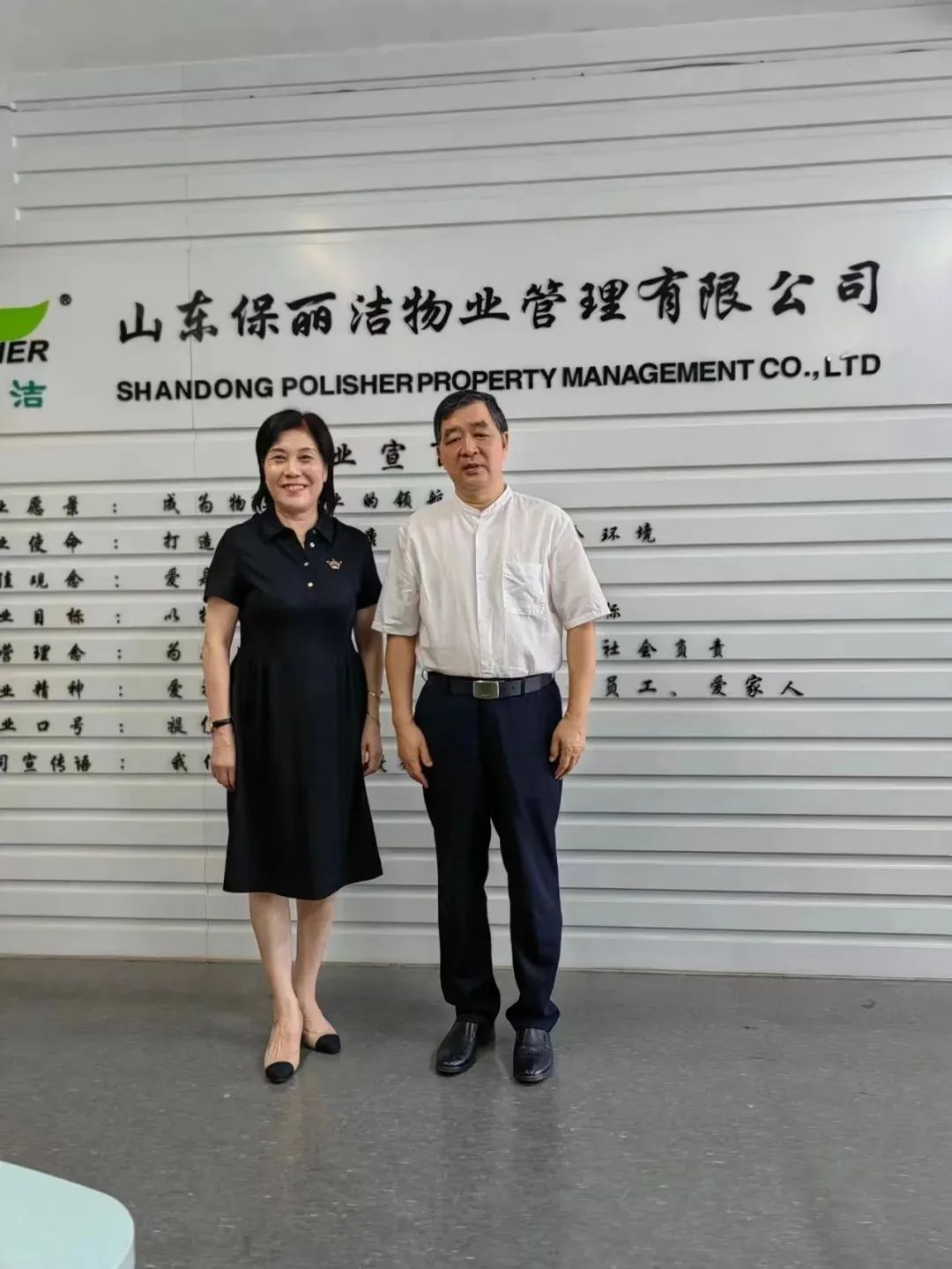 走访过程中,省女商会常务副会长、山东保丽洁物业管理有限公司董事长张华就企业发展历程、服务定位、企业文化和未来发展方向等向冯庆禄顾问进行了详细的介绍。