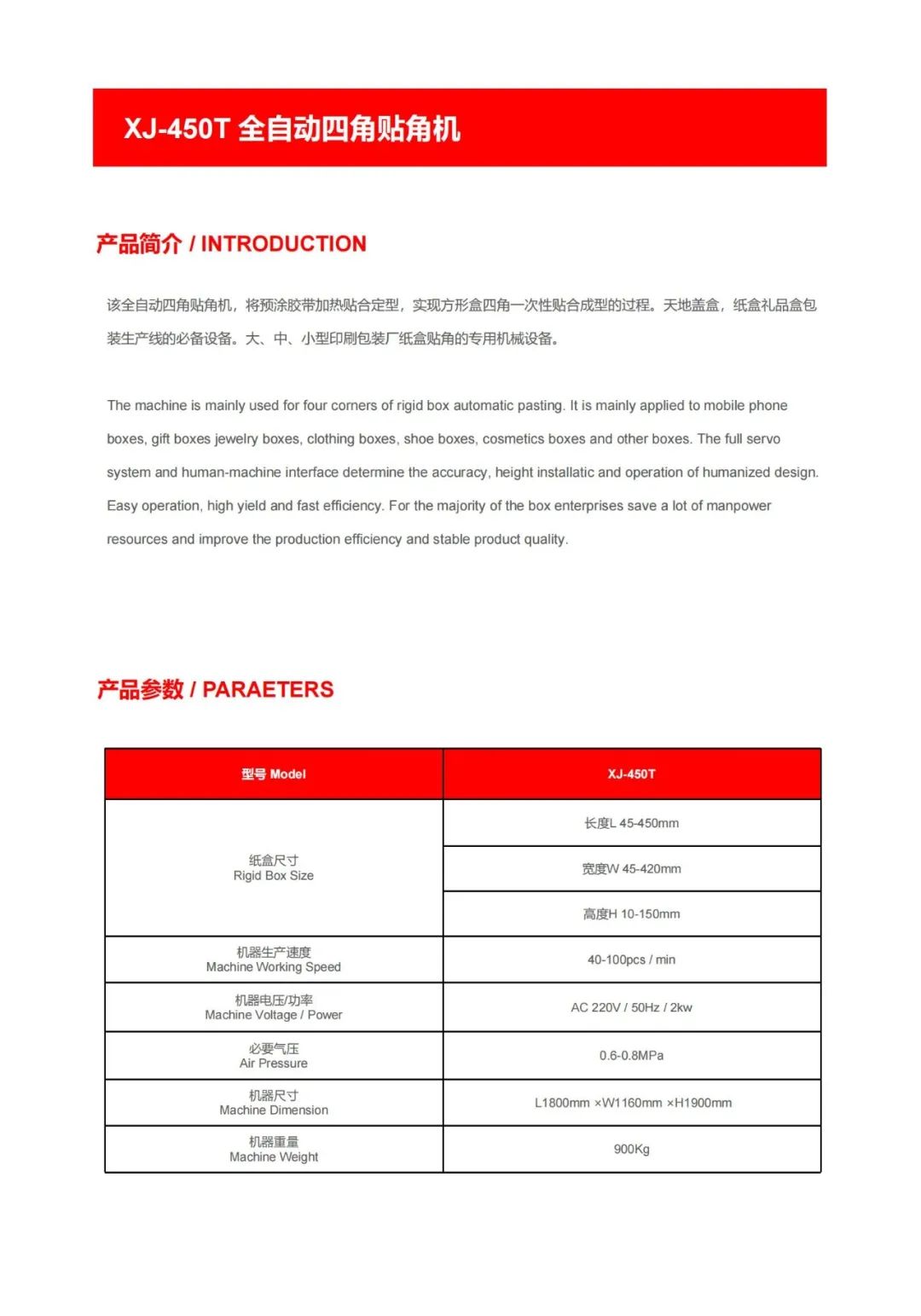 东莞市翔劲自动化设备科技有限公司是一家专业研发、制造、销售、服务为一体的设备制造企业。公司主要生产天地盖纸盒、书型盒、酒盒、圆桶盒等包装设备。在礼品包装行业、高端礼金包装行业内有着成熟的产品和解决方案,并成为行业的创新者和实践者。产品畅销全国各地、东南亚和东欧,深受用户好评。通过技术创新和专业服务,从而实现可持续发展。始终以更优的质量,更好的服务立足市场。