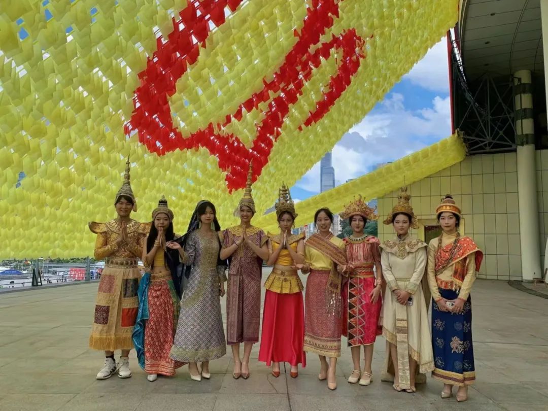 耀眼的头饰,璀璨的服装,身着东盟国家地区服饰的欧美学子礼仪队,为“东博会”和“峰会”的成功举行增添了一道亮丽的风景线。