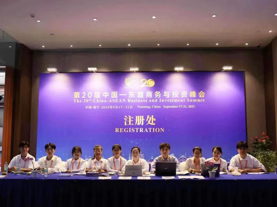 2023年9月16日至19日,第20届中国-东盟博览会、中国-东盟商务与投资峰会(以下分别简称“东博会”和“峰会”)在广西南宁举办。场馆内外,来自广西外国语学院欧美语言文化学院志愿者们在各自岗位保障会议顺利举行。