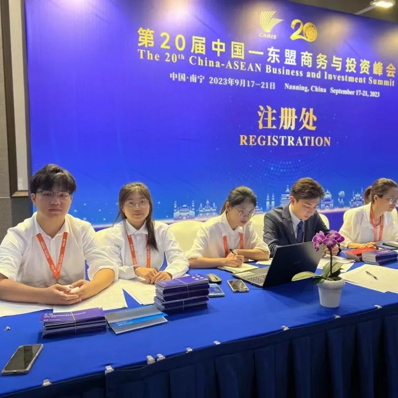 2023年9月16日至19日,第20届中国-东盟博览会、中国-东盟商务与投资峰会(以下分别简称“东博会”和“峰会”)在广西南宁举办。场馆内外,来自广西外国语学院欧美语言文化学院志愿者们在各自岗位保障会议顺利举行。
