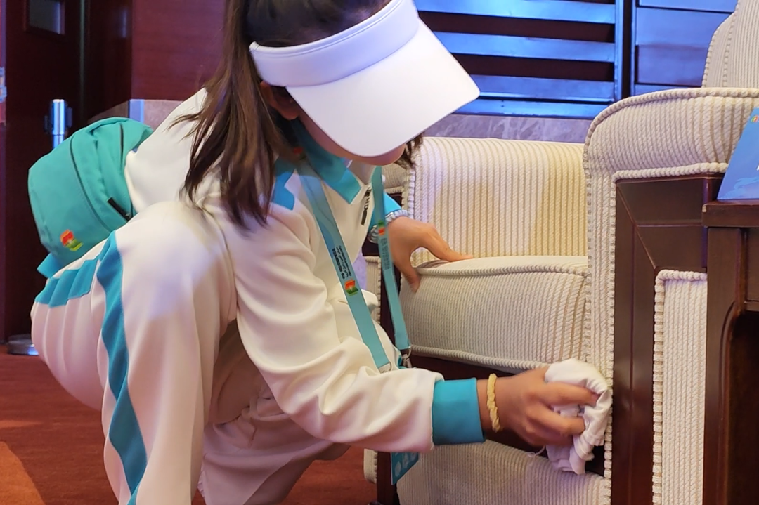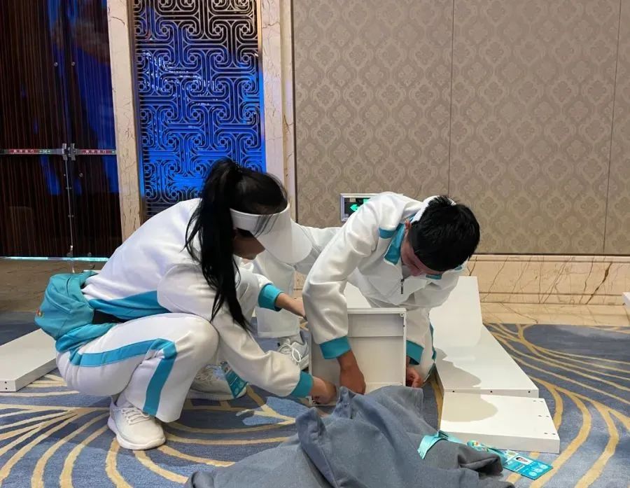9月10日-18日“小驼铃”志愿者们分别在交通保障、展馆布场、贵宾接待等组别提前上岗服务,协助开展相应的会前准备工作。志愿者李咏琪说:“服务中有很多温馨瞬间,有一次我发现一位嘉宾走路很慢,想着可能腿脚受伤了,便找来会场轮椅帮助他,他离场的时候找到我们会场负责人,说'小驼铃'很贴心,很细心。我和小伙伴们都特别开心,我想这就是志愿服务的意义所在。"