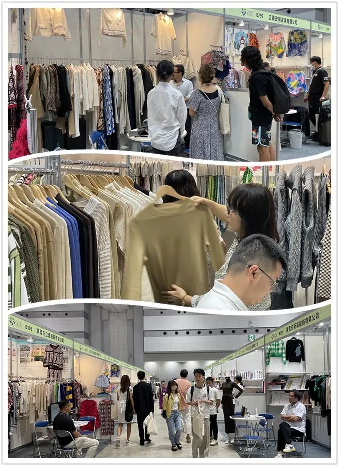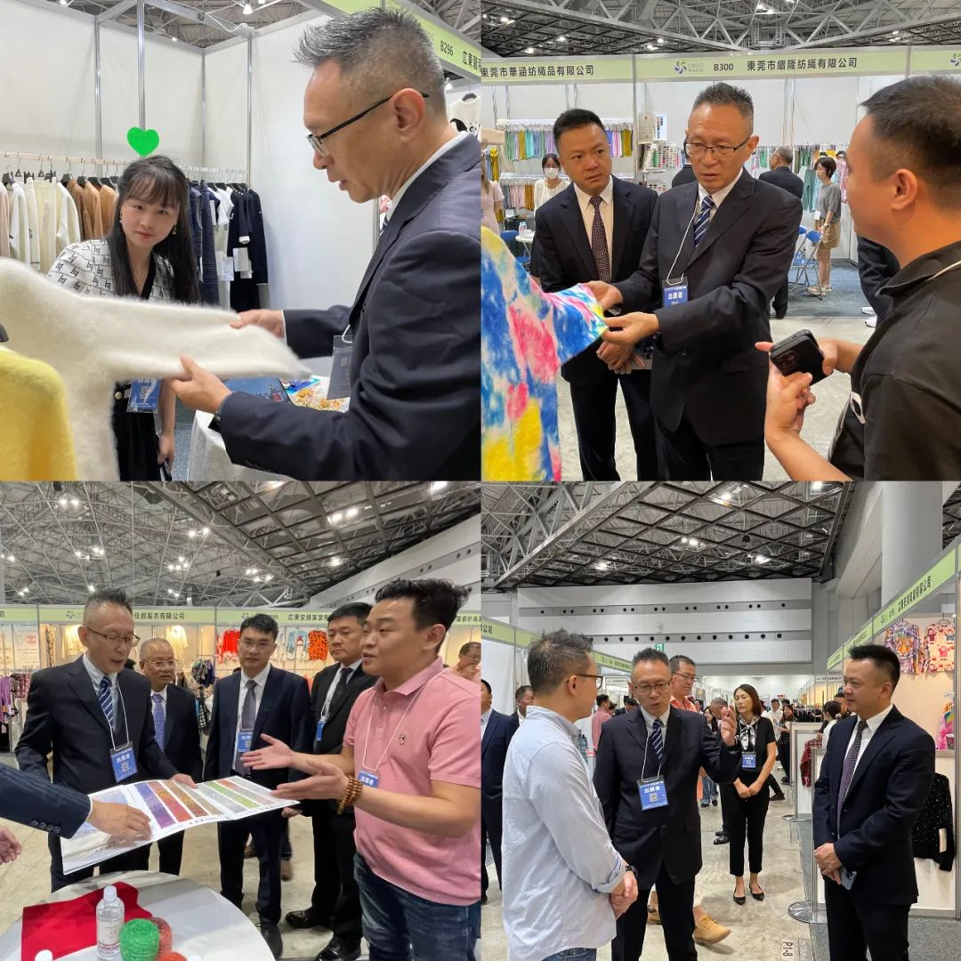 开展首日,商务交流团来到2023年日本亚洲纺织成衣展(东京)的广东东莞大朗毛织专区参观。