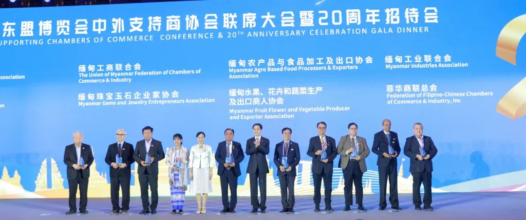 东博会举办20年来,40多家中国、东盟及RCEP其他成员国国家级商协会和机构成为东博会支持商协会和特别合作机构。在各方的共同努力下,东博会走过了不平凡的历程,迎来了二十周年大庆,为东博会连续成功举办作出了重要贡献。招待会对东博会支持商协会和机构在历届东博会筹备工作中的努力和贡献表示感谢,并对文莱—中国友好协会、柬埔寨中国商会、印尼中华总商会、老挝国家工商会等38个外国商协会和机构颁发中国—东盟博览会20周年杰出贡献奖;对中国电力企业联合会、中国对外承包工程商会等9个协会和机构颁发中国—东盟博览会20周年杰出组织贡献奖。