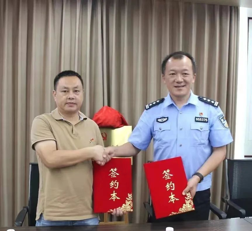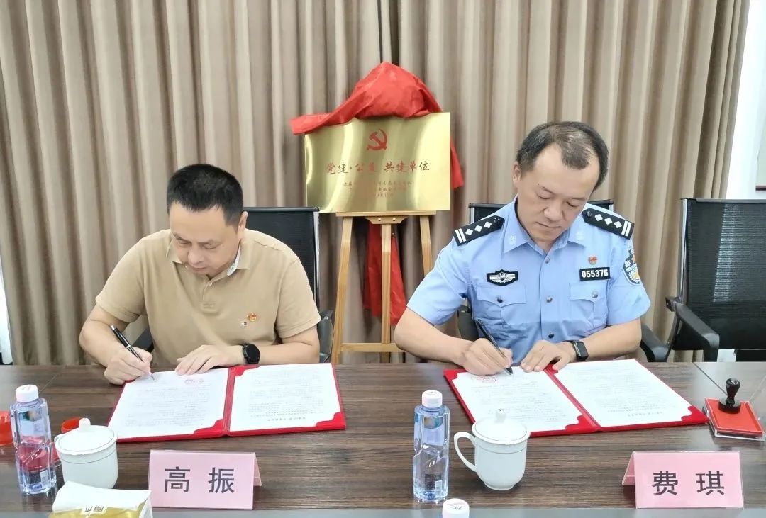 奉贤公安分局交警支队支队长费琪与奉贤安徽商会监事长、党总支书记高振共同签订了《党建·公益 共建协议书》。