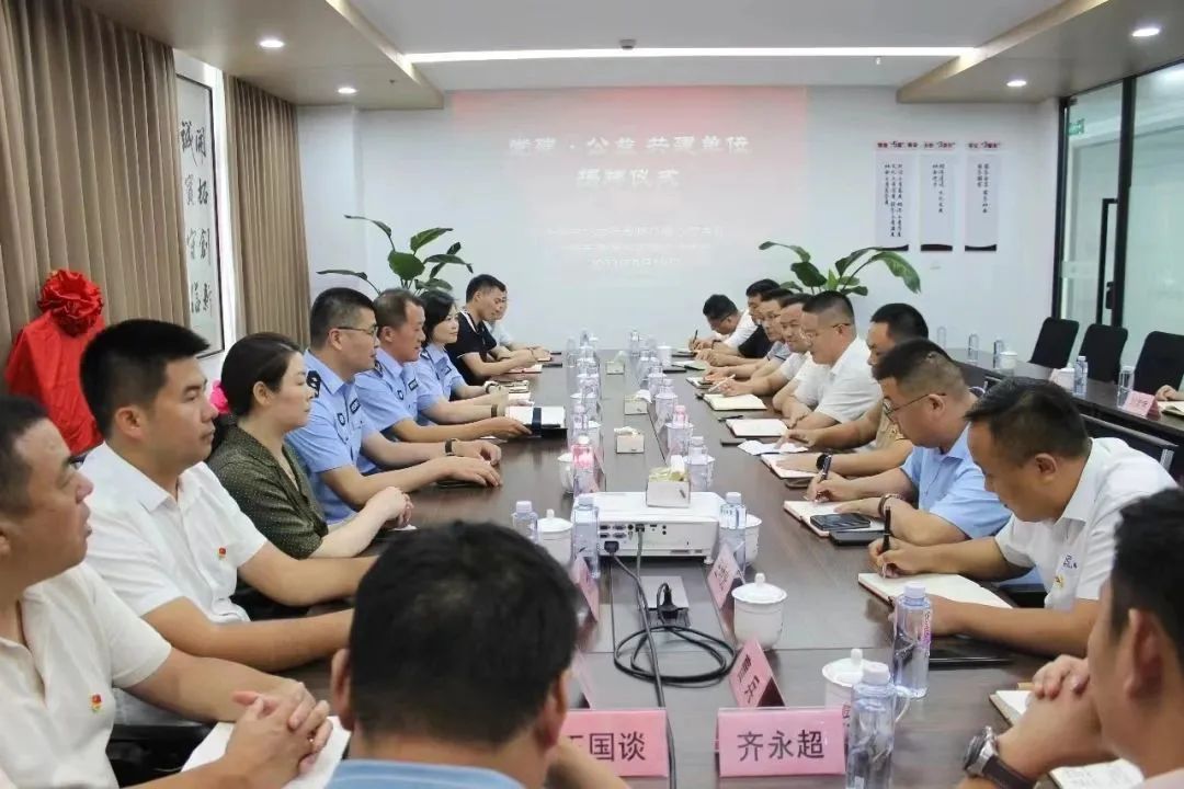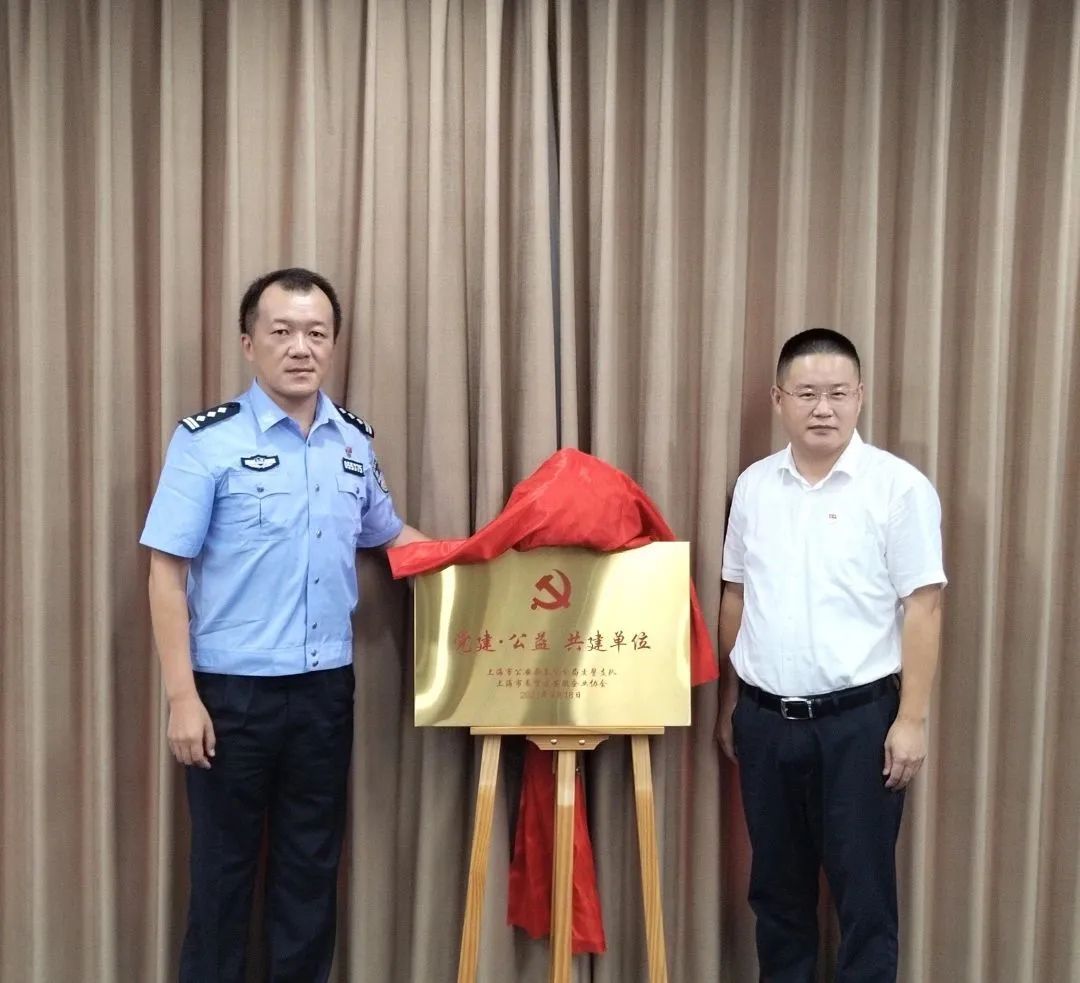 现场,奉贤公安分局交警支队支队长费琪和奉贤安徽商会会长潘诗良共同为党建·公益 共建揭牌。