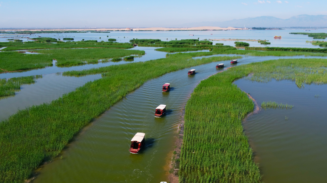 这里黄沙与绿野交相辉映,烽火台与古长城驻足相望,黄河与渡船相伴千年,滩渚与芳草相得益彰,交织出一幅塞上风光五彩画卷。