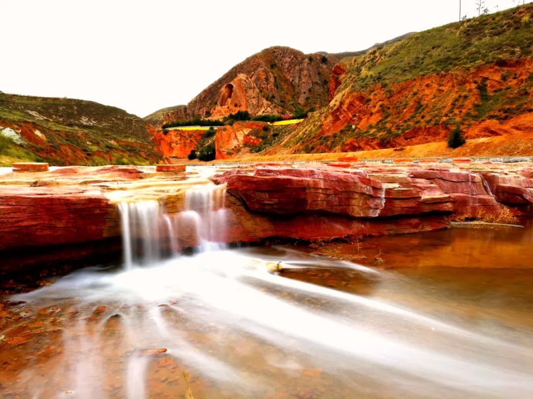 宁夏火石寨丹霞地貌四季景致变化无穷,暖春时节,漫山野花竞相开放;盛夏,山色鲜亮,灿若明霞;深秋,野果飘香,红叶似火;隆冬,白雪压顶,红崖片片。