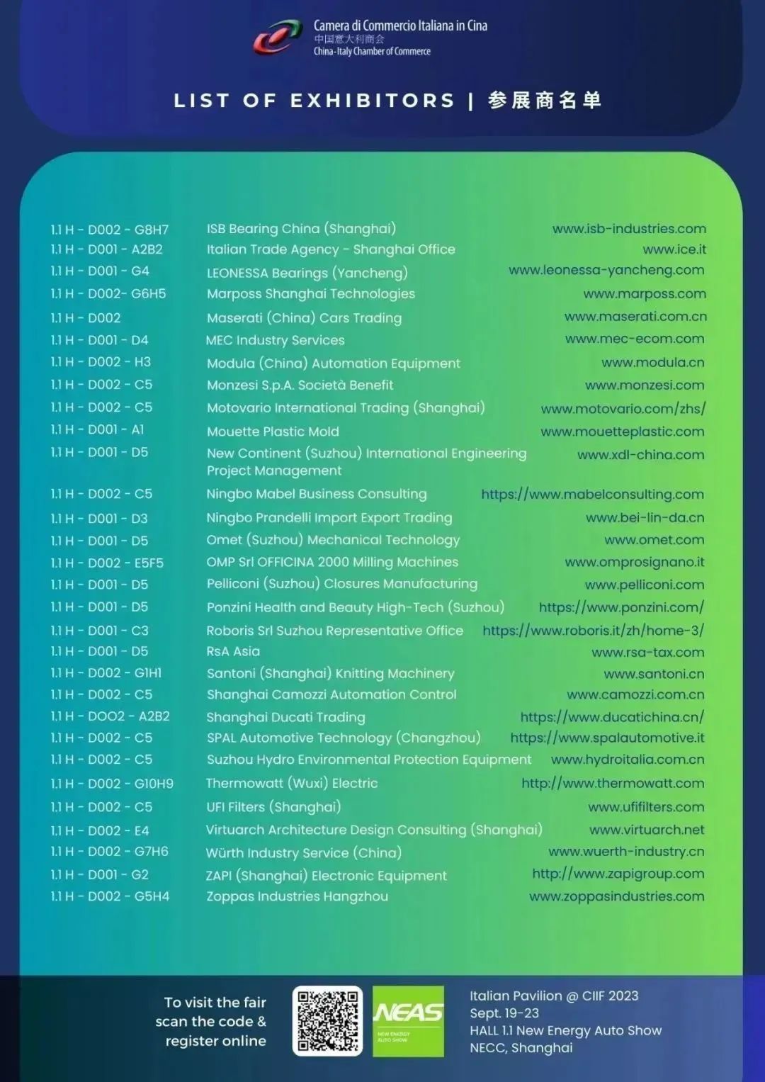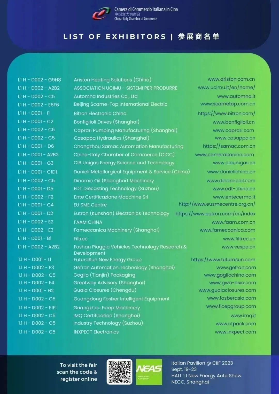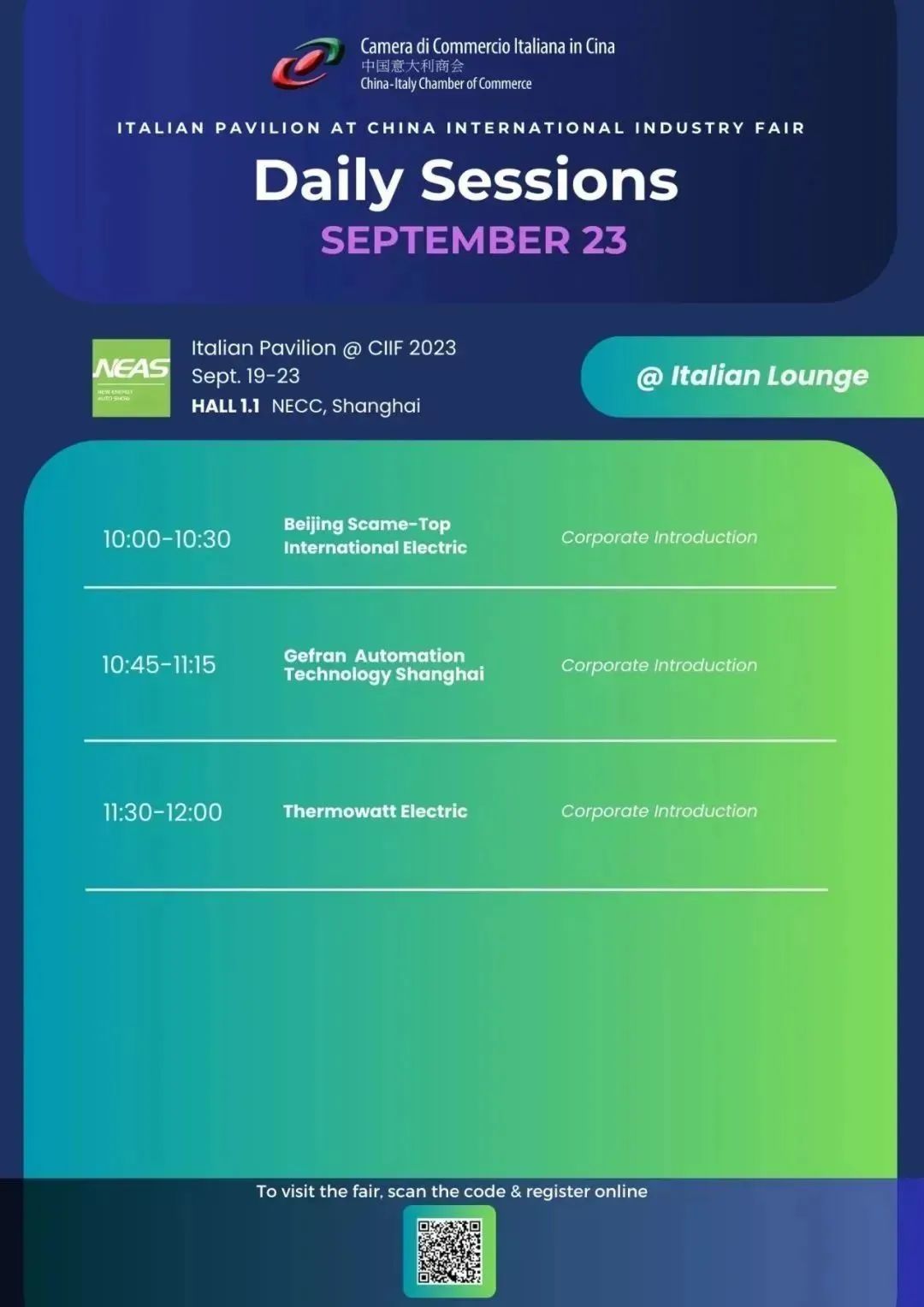 中国意大利商会(CICC)很高兴邀请您参观9月19日至23日在上海国家会展中心举行的第23届中国国际工业博览会意大利馆.