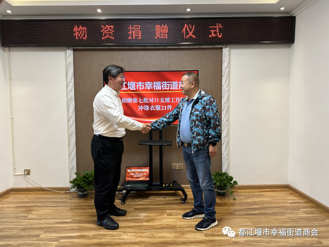 杨波表示,非常感谢都江堰市幸福街道商会带来的温暖,给支援工作组及时增添衣物,在高原工作中能起到很好的保暖作用。