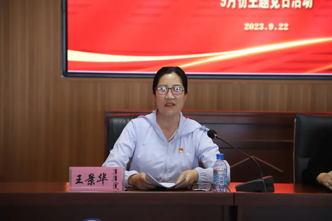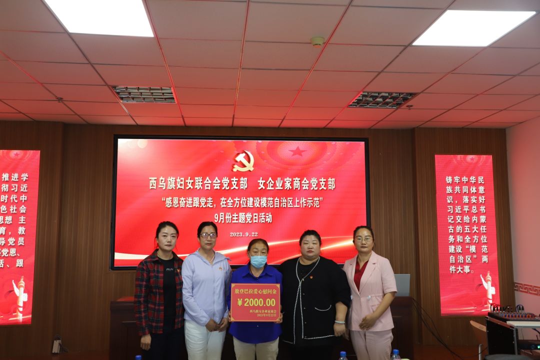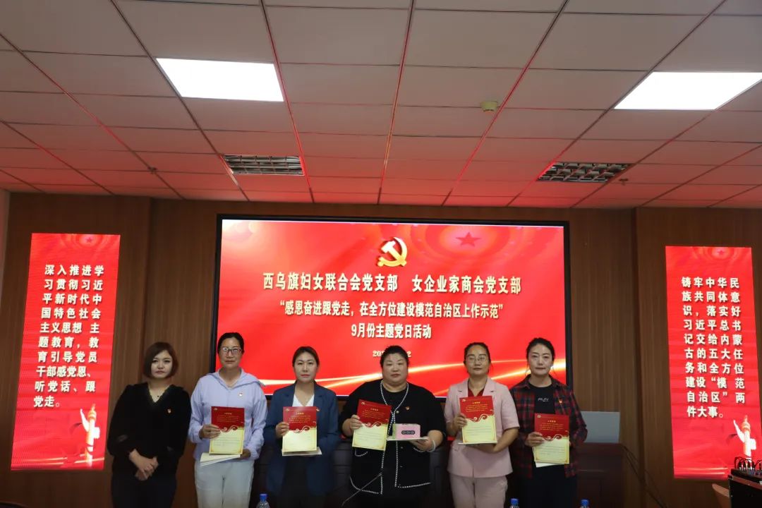 结合第40个民族团结进步活动月,9月22日,旗妇联党支部联合女企业家商会党支部开展“感恩奋进跟党走,在全方位建设模范自治区上作示范”9月份主题党日活动。旗妇联党组书记、主席阿拉腾花主持,旗妇联、女企业家商会党员参加活动。活动以集中学习、诵读红色经典、民族团结分享会、过政治生日、“为妇女儿童办实事”等多种形式开展。