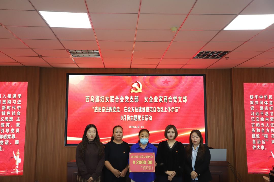 开展《我为妇女儿童办实事·送温暖》活动。活动中,旗妇联党支部、女企业家商会党支部向高日罕镇白音海勒斯台嘎查尿毒症患者敖登巴拉发放慰问金,让患病妇女感受到社会的关怀及妇联“娘家人”的温暖。