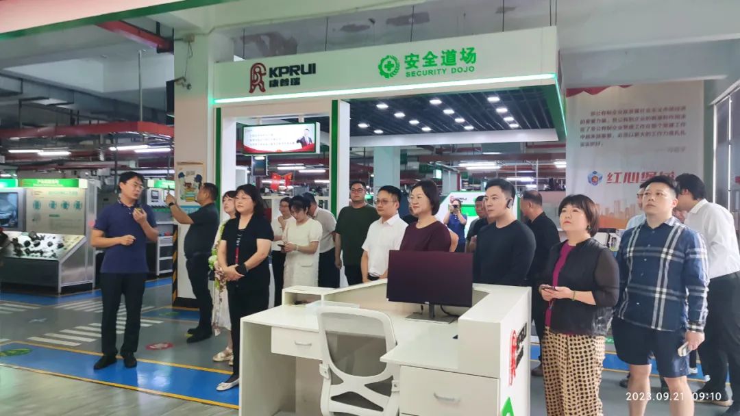 考察团一行在康普瑞公司董事长马炳新的引领下,参观了智能车间生产现场、安全生产培训教育平台建设、污水处理系统等,全面了解康普瑞公司的全流程信息化管理和高质量绿色发展情况。