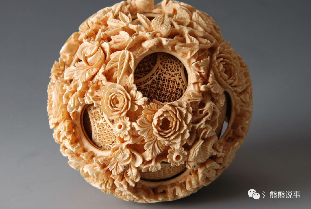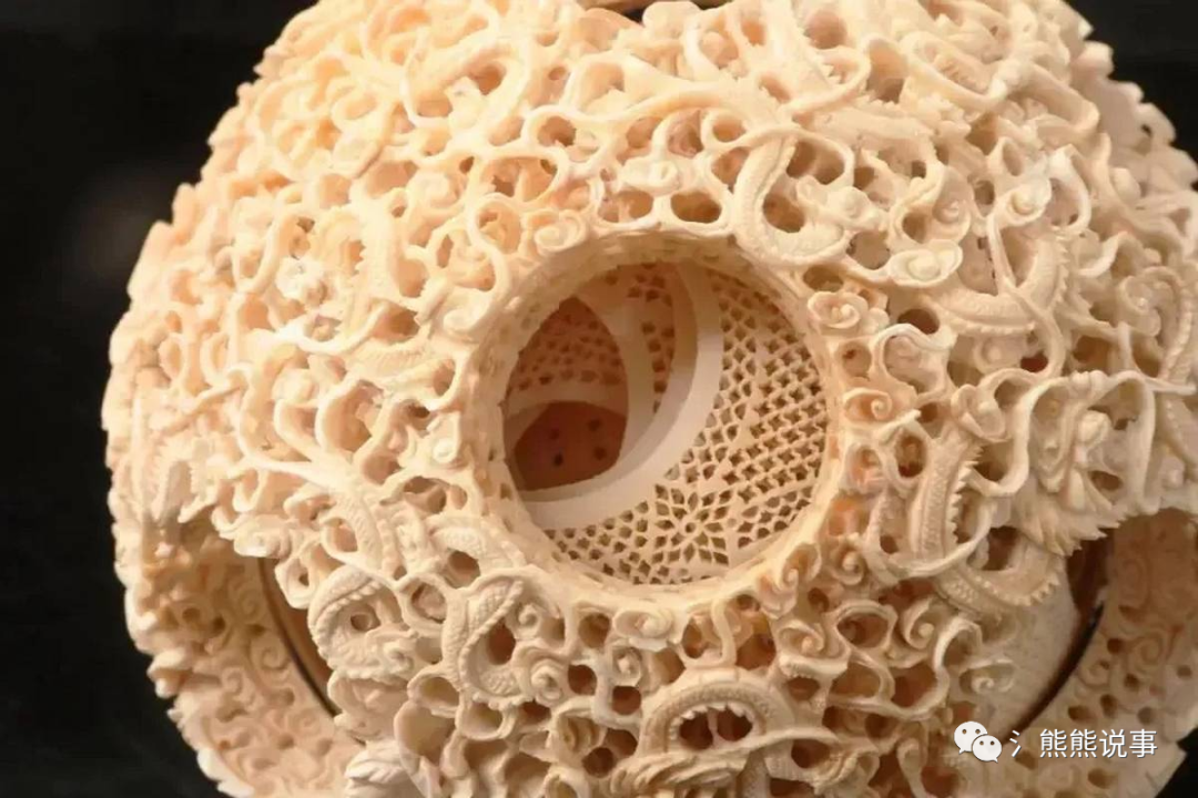 因为这个球是由一颗完整的象牙雕刻起来的,里面有一层又一层的图案,而且每一层都会有自己的形状和自己的内容。