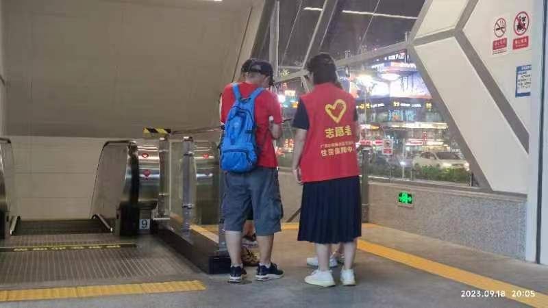 在安保巡防中,志愿者遇到一位神志恍惚的男子,经询问得知该男子是外来务工人员,遇到了困难且无法与家人取得联系。志愿者们耐心安抚该男子情绪,并征得同意后将他送往南宁市救助站,帮助其联系上了家人。