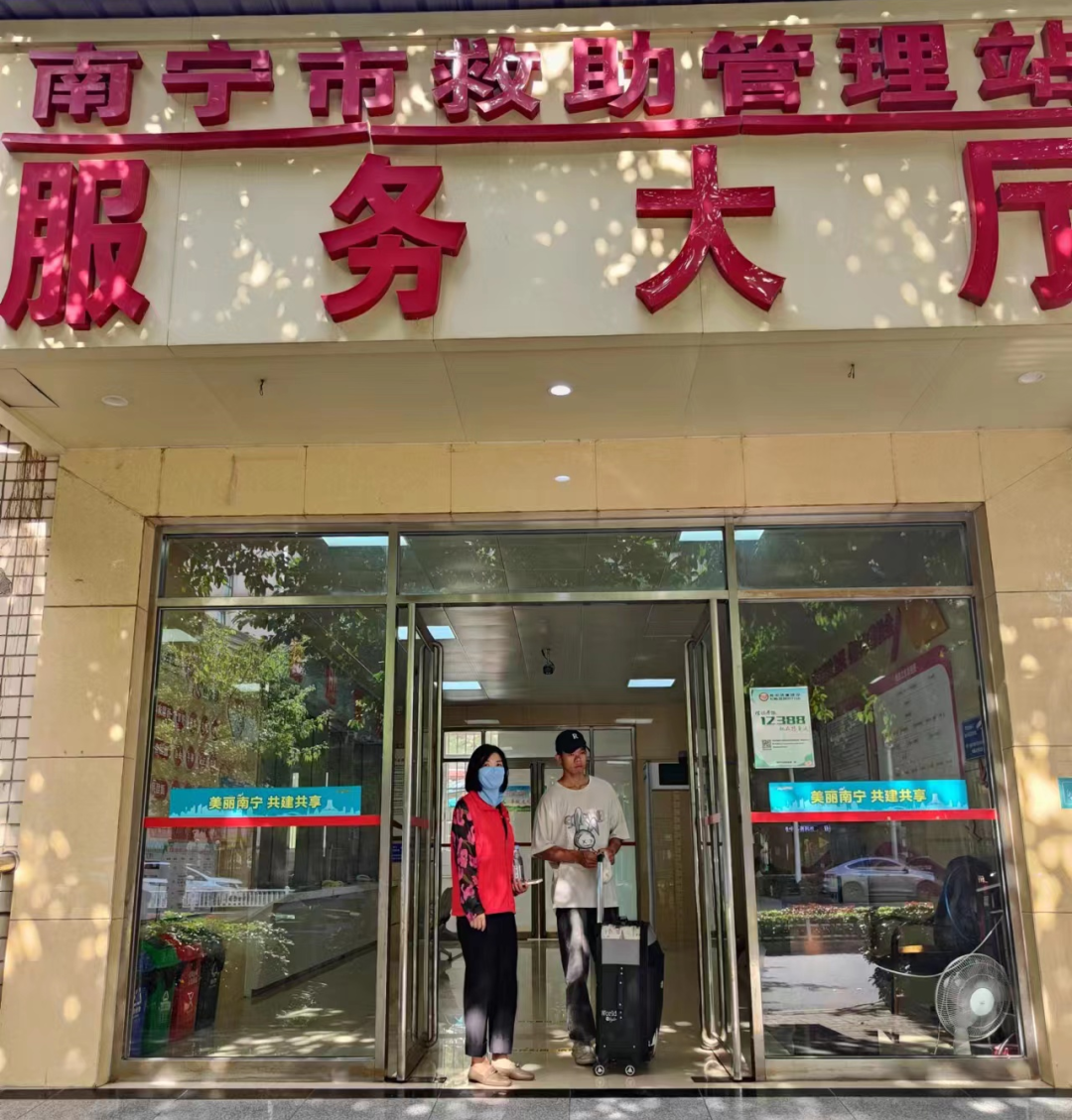 志愿者们陪同外来务工人员前往南宁市救助站