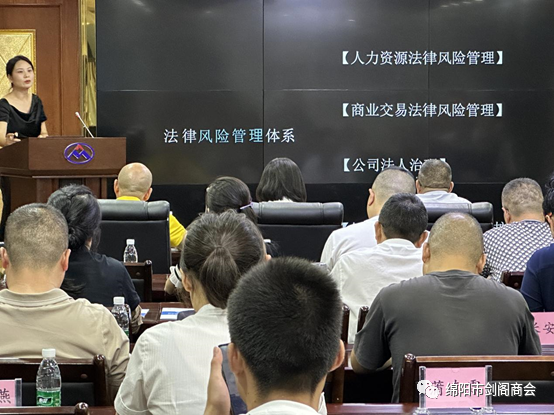 为了全面提高商会会员企业管理水平,防范企业经营过程中的民事和刑事风险,绵阳市剑阁商会特地聘请三位专家为会员企业专题讲授用人用工风险、民事、刑事风险防范以及事后处理民事、刑事风险方法。