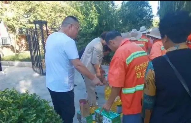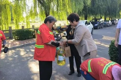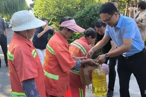 活动过程中,相公庄街道党工委副书记、政法委员张文杰,相公庄商会会长、三牛风机董事长牛余会,商会副会长、健康人药业董事长郑佐家,孙铁匠铺总经理孙淑芹、商会日常负责人李洋,爱心企业旭日风机总经理赵彦申、环卫部门相关领导将准备的花生油、猕猴桃、月饼相继发放到到一线环卫工人手中,感谢环卫工人为美好环境的辛苦付出,并送上节日的祝福。