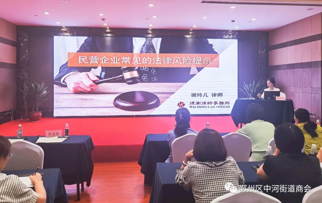 炜衡律师事务所谢玲儿律师以《民营企业常见的法律风险提示》为主题,结合具体案例,对企业内部治理、对外经营、融资借贷、劳动用工等方面的法律风险作了生动讲解。对内重点讲解了企业的设立、治理和清理;对外讲解了从合同订立、履行及纠纷解决等过程的法律规定、风险及应对;融资借贷重点讲解了金融借款和民间借贷中涉及的法律风险;劳动用工讲解了企业规章制度和劳动合同等方面的争议风险点以及规范的防范措施。街道商会将持续发挥自身资源优势,搭建优质的交流学习平台,引导企业依法治企,为民营经济健康发展营造良好法治环境。
