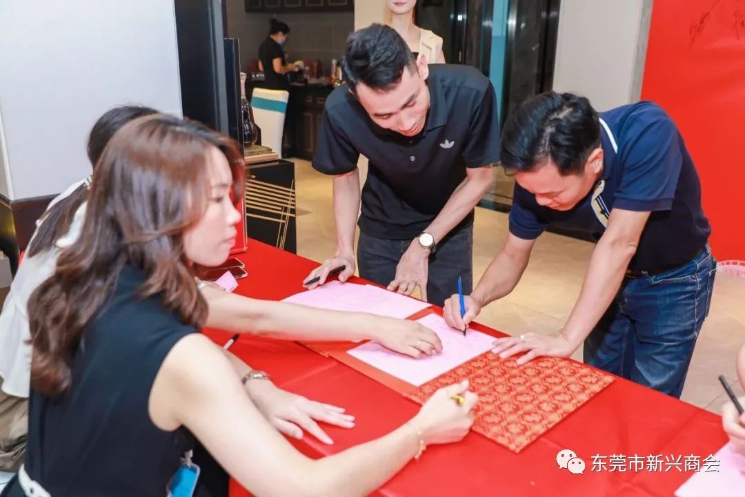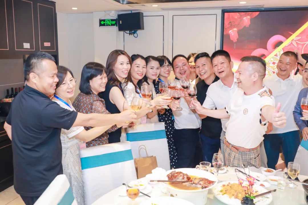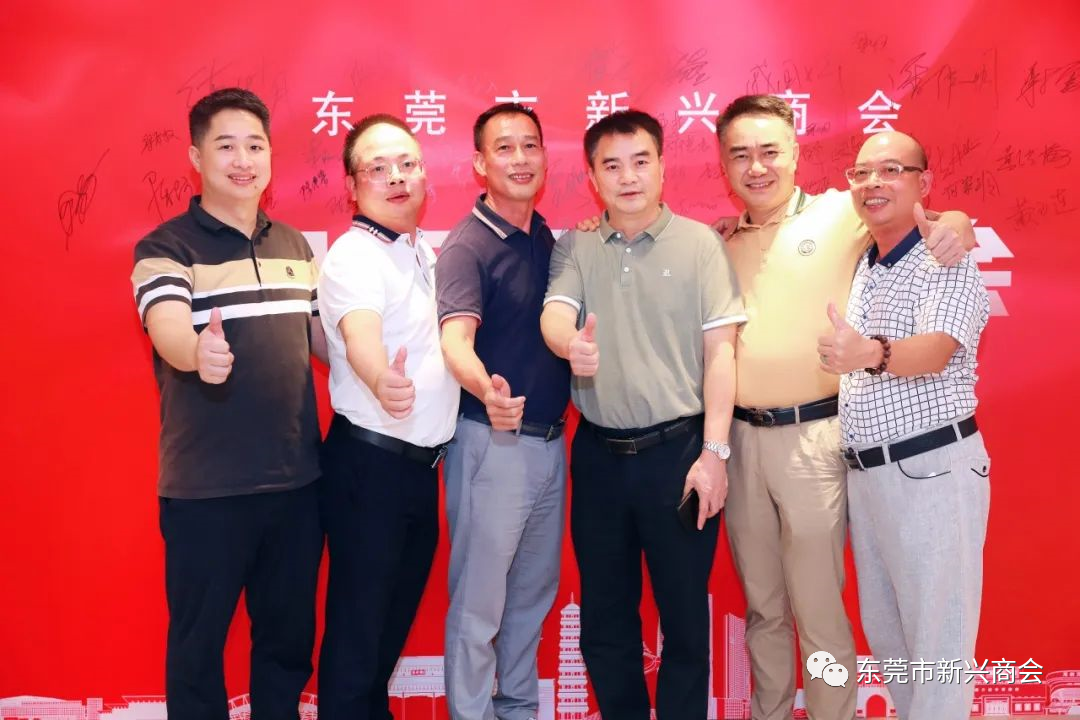下午 6 点,结束研讨会的商会领导班子们和会员们进行合影,同在异乡奋斗的新兴游子们难得相聚,一起说着家乡话,同声喊着“东莞市新兴商会,明天会更好!”