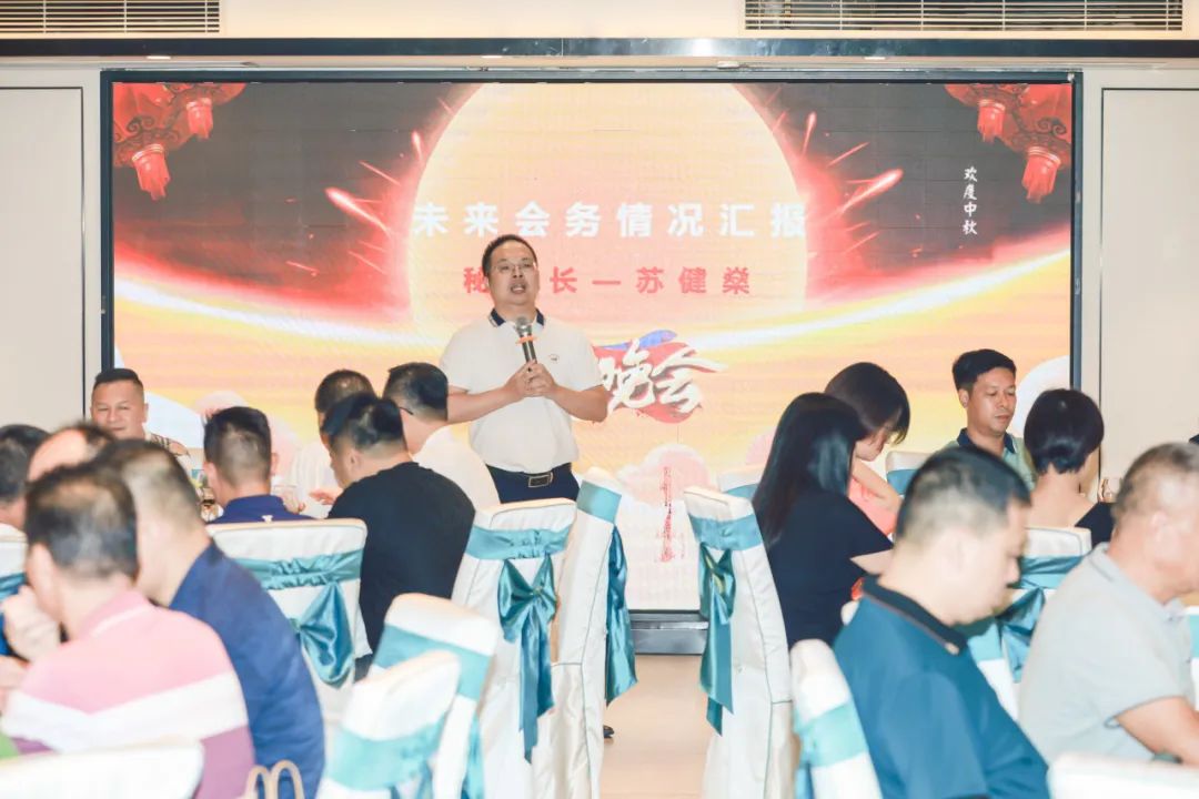 接下来是秘书长苏健燊向会员单位们汇报商会会务情况,公布商会入会门槛,倡导会员们多发掘身边优秀乡贤,推荐加入商会,一起携手共筑,聚力前行!