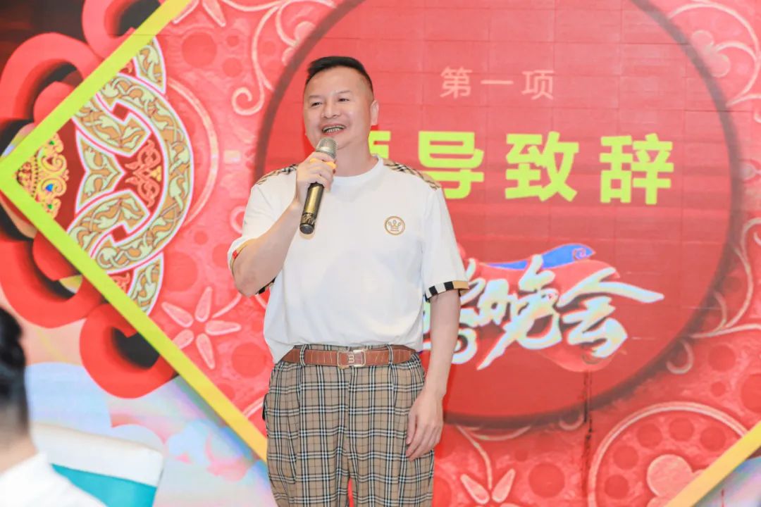 接着是常务会长梁朝灿致辞,梁会长表示,疫情三年都没打垮我们新兴人,以后只会越来越强大,以后商会活动会越来越多,大家共同聚乡情,凝财气!