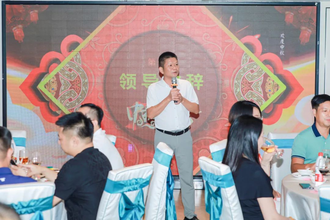 晚宴开始,领导班子们上台祝酒,共同祝大家中秋快乐,家庭幸福!