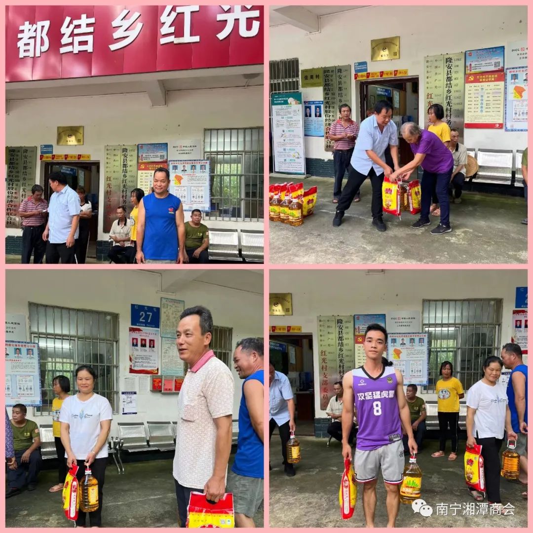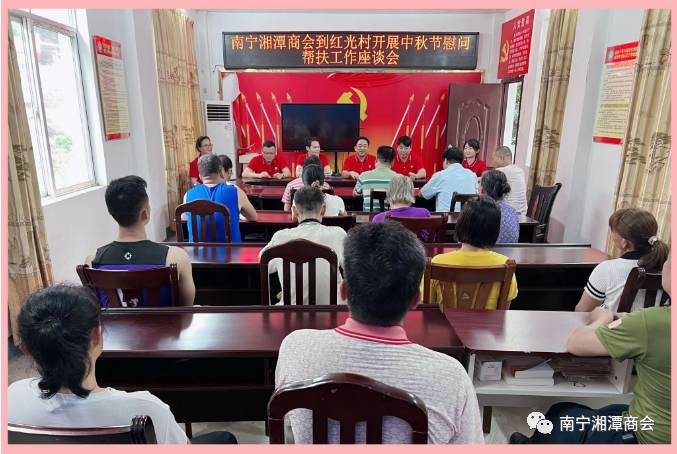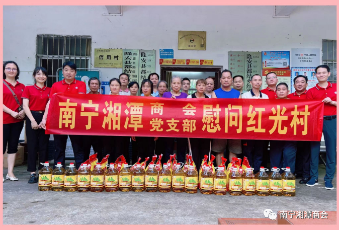 月到中秋分外明,人逢佳节倍思亲。9月22日,南宁湘潭商会、商会党支部在会长王文光的率领下,秘书长杨玉山,副会长姜仲全、冯晴,理事吴磊峰,执行秘书长杨艺一行六人,满载湘潭籍企业家的浓情暖意和整车粮油物资,从南宁市驱车前往僻远的隆安县都结乡红光村,与该村村委一道,对全村帮扶重点监控户进行中秋节前现场慰问。